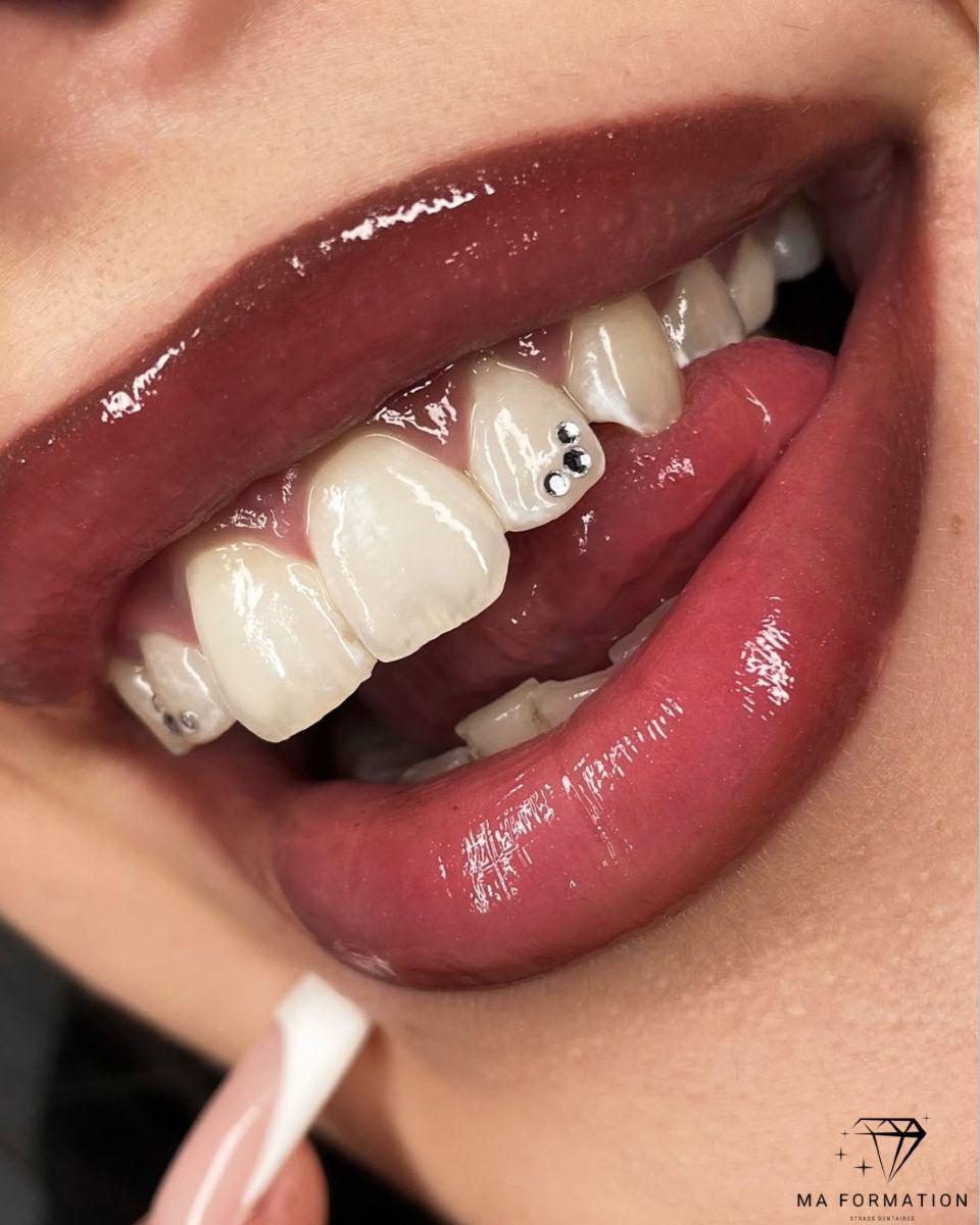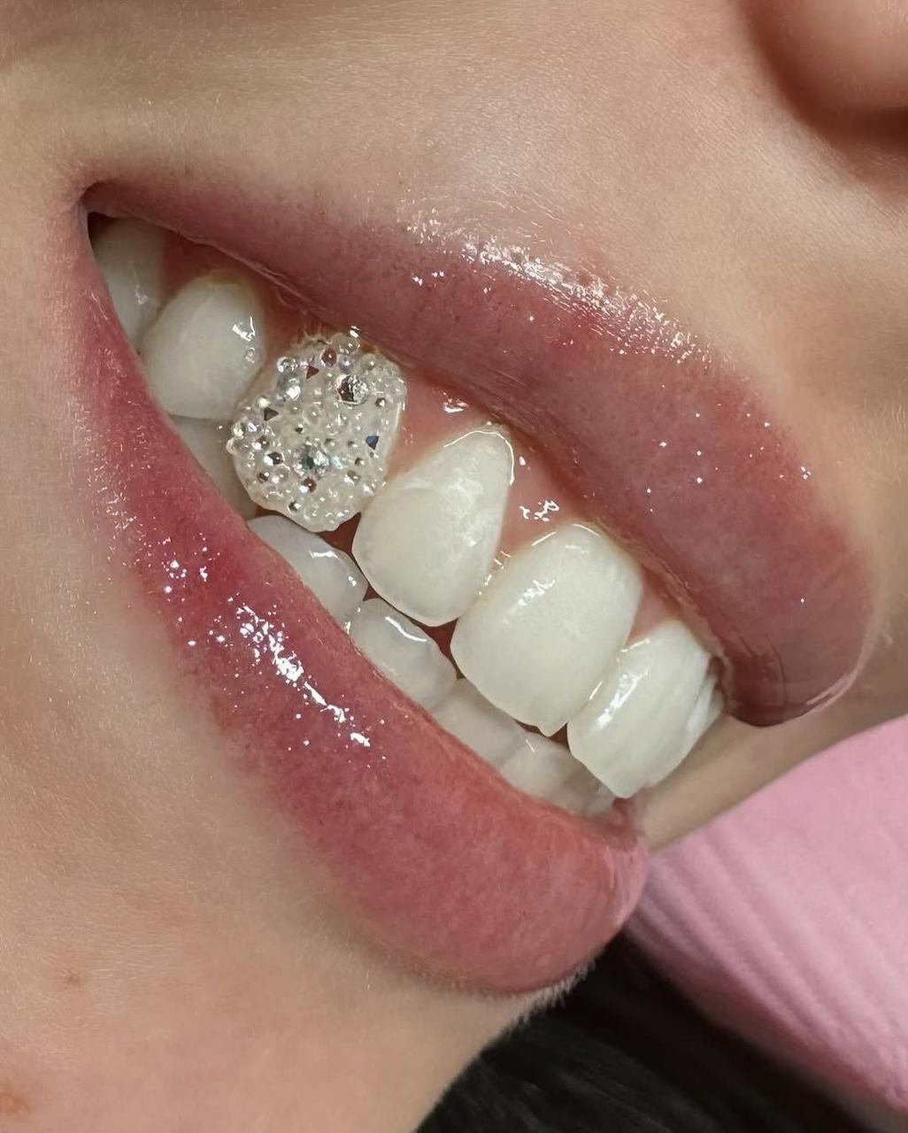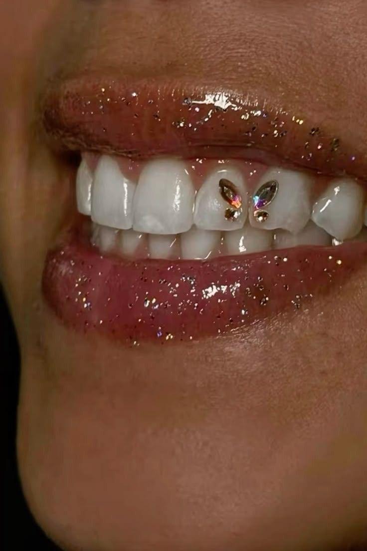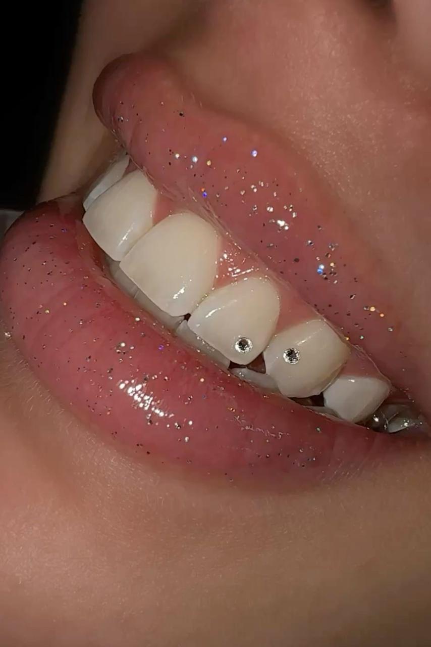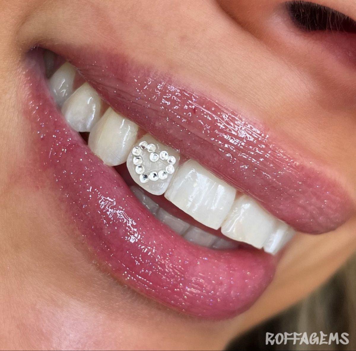Subtle tooth gems highlighting just the outline for a chic, understated shine.